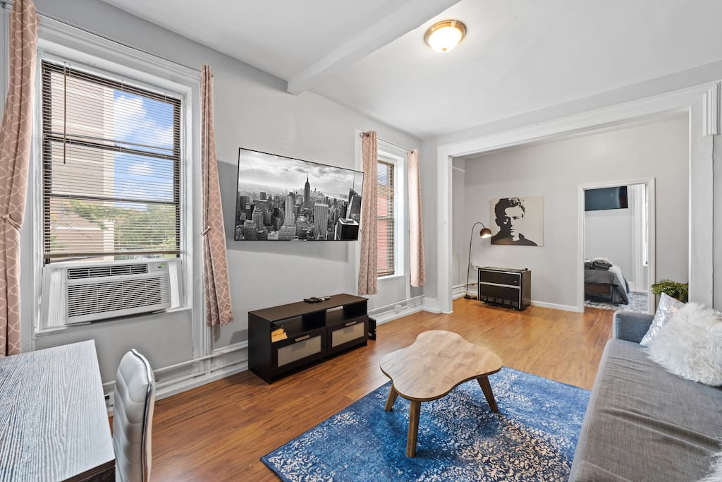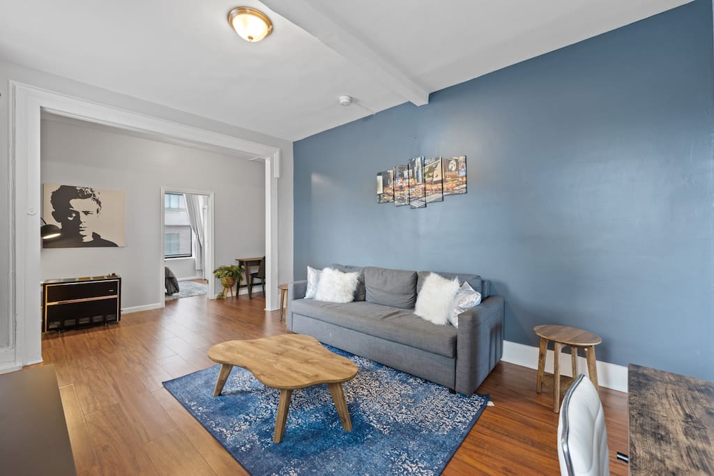 Welcome to our charming 1 bedroom apartment in the heart of Hoboken, NJ! ☞ 1 Private Bedroom: Comfortable queen size bed for a restful night's sleep. ☞ 1 Bathroom: Clean and bright bathroom for your convenience. ☞ 2 Total Beds in the Unit ☞ Living Room: Relax on the sofa bed while watching your favorite shows on the new 55" TV. ☞ Kitchen: Fully equipped kitchen for all your cooking needs.Welcome to our charming 1 bedroom in the heart of Hoboken!