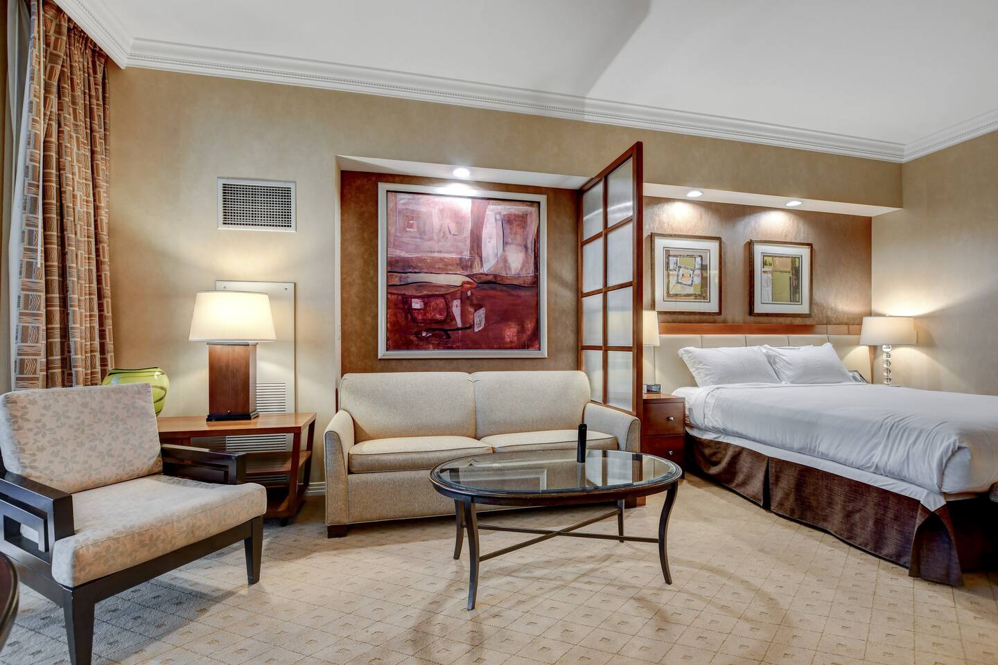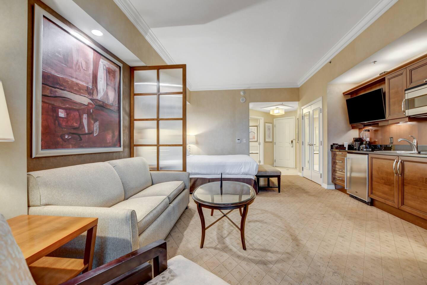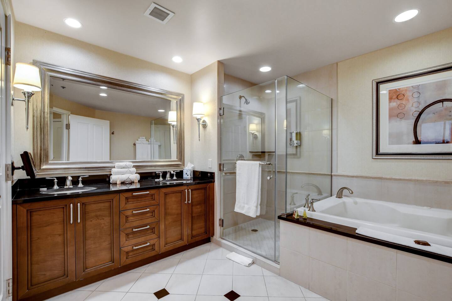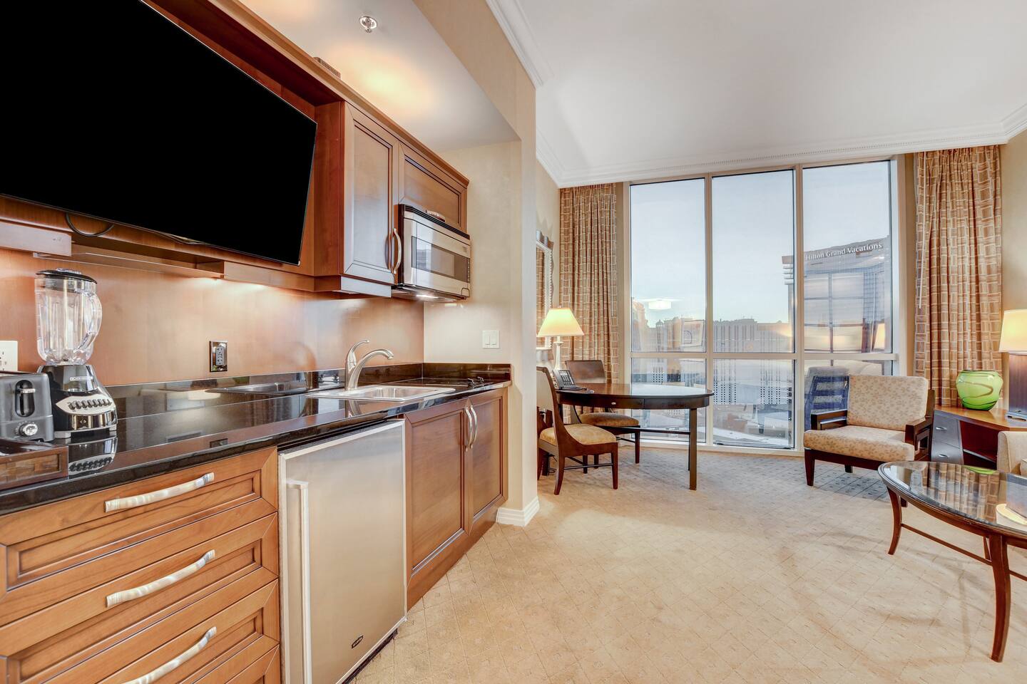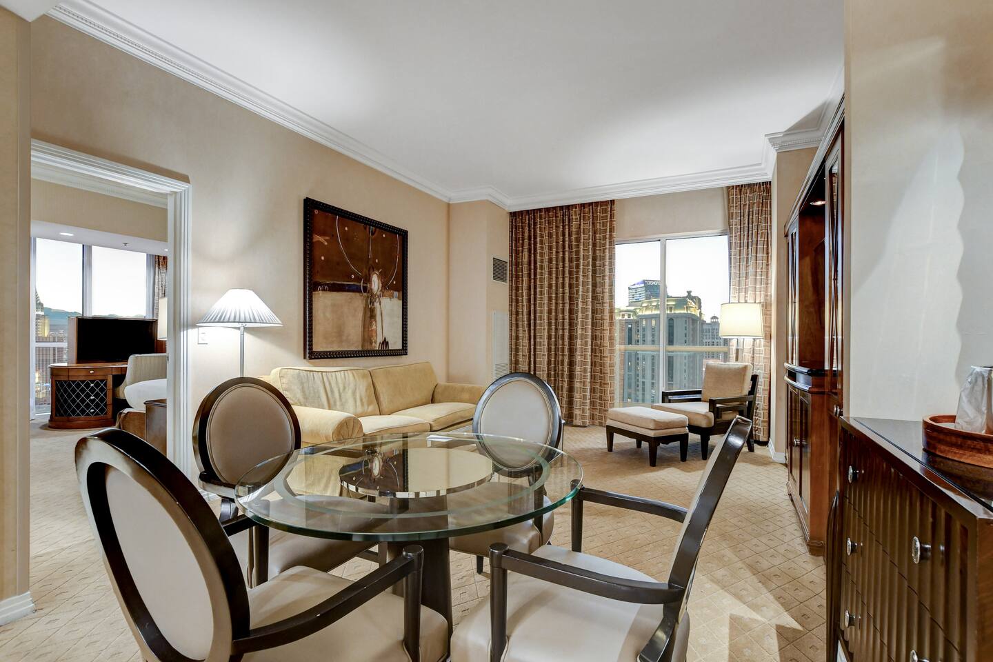 *Beautiful Condo at Signature MGM *Access to ALL MGM Amenities – No Additional Cost *5-minute Walk to Strip - Underground Tunnel *Stunning views *Cozy 1-bedroom Condo + Adjoining separate entrance Studio *Two king beds Total – 1 in each suite *2 pull-out Queen beds Total – 1 in each suite *Fully Equipped Kitchen + Living Room *Access to Pools, Vibrant Lounges, & Fitness Facilities *Plush Bedding *24/7 Security & Valet Parking Included *Topgolf Next Door *Starbucks in Tower 1