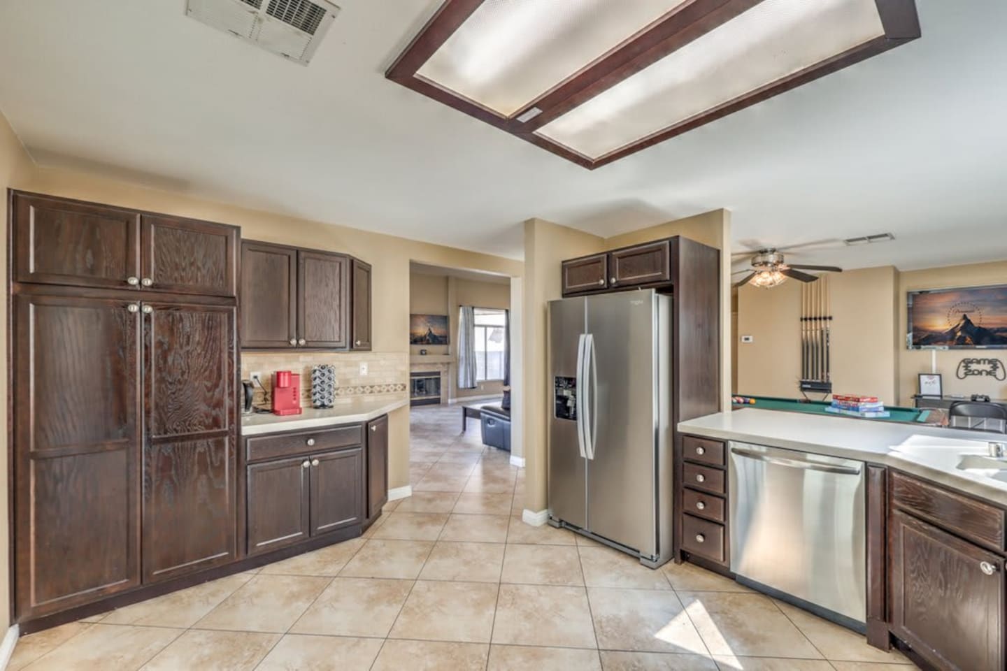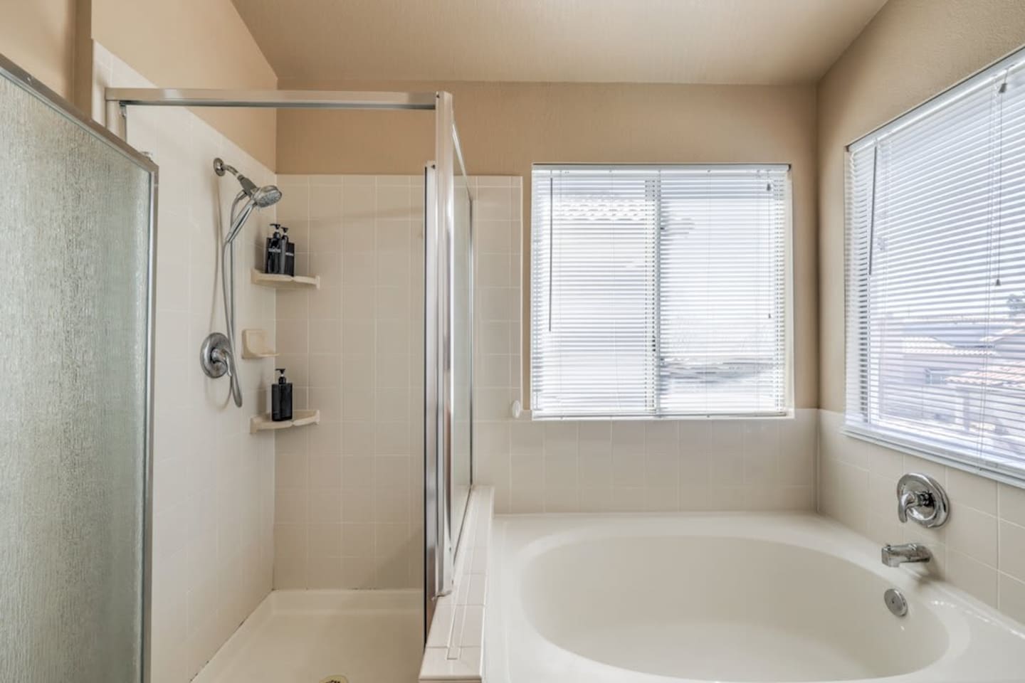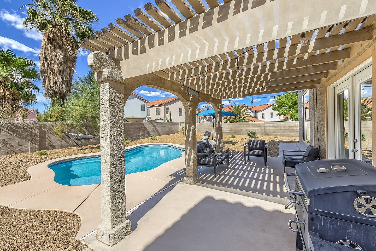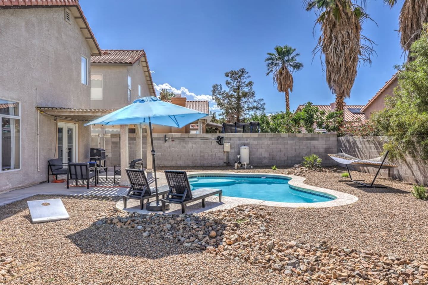 🌴 Spacious Vegas Home w/ Pool Table, Private Yard * THE SPACE * This thoughtfully laid-out two-story home features 3 bedrooms and 2 full bathrooms, providing separation between living and sleeping areas for added comfort. ☞ Open living area with smart TV and fireplace ☞ Fully equipped kitchen with modern appliances and dining table ☞ Dedicated game room with pool table for friendly competition ☞ High-speed Wi-Fi and laptop-friendly workspace ☞ In-unit washer and dryer * WHERE YOU'll SLEEP * ☞ Bedroom 1: King Size bed + single bed and Smart TV ☞ Bedroom 2: Queen Sized Bed ☞ Bedroom 3: Two double beds * OUTDOOR SPACE * ☞Enjoy a private backyard with outdoor furniture and BBQ grill—perfect for casual meals and unwinding after a day in the city. ☞ Pool is available year around but not heated. * LOCATION HIGHLIGHTS * ☞ Las Vegas Strip – approx. 15–20 minutes ☞ Downtown Las Vegas – approx. 15 minutes ☞ Las Vegas Motor Speedway – approx. 20 minutes ☞ Harry Reid International Airport – approx. 25 minutes Convenient access to major roads, dining, shopping, and entertainment. * AMENITIES * ☞ Private Billiards Table ☞ Free driveway and street parking ☞ Family-friendly home ☞ Long-term stays allowed ☞ Entire home access ☞ Quiet residential neighborhood