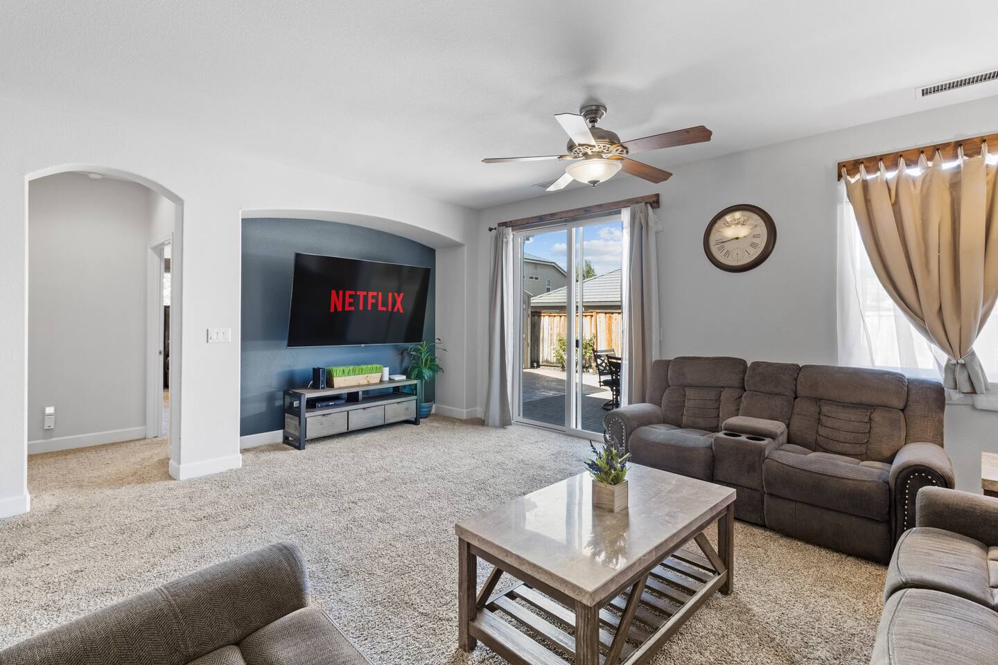 ✨ Welcome to your cozy retreat in the Sierras – the perfect Reno/Tahoe home base! ✨ Tucked away in a quiet, friendly neighborhood, this spacious 4-bedroom home offers comfort, convenience, and a touch of mountain charm. Just minutes from downtown Reno and a scenic drive to Lake Tahoe, you’ll have easy access to casinos, restaurants, nightlife, and year-round outdoor adventure. Whether you’re visiting for business, a family getaway, or a mix of both, this home has everything you need to settle in and enjoy. ☆☆ HIGHLIGHTS ☆☆ Inside, you’ll find a warm and inviting living room with plush seating, a flat-screen TV, and a fireplace for cozy Sierra evenings. The fully equipped kitchen makes dining in a delight with stainless steel appliances, cookware, and a dining area perfect for family meals or casual coffee chats. Step outside to the peaceful backyard patio—an ideal spot for morning coffee or winding down under the stars. With high-speed Wi-Fi, central heating & A/C, and in-home laundry, you’ll have all the modern comforts of home during your stay. ☆☆ SLEEPING ARRANGEMENTS ☆☆ 🛏 Primary Bedroom: King bed, ensuite bathroom 🛏 Bedroom 2: Two Twin Beds 🛏 Bedroom 3: Two twin beds 🛏 Bedroom 4: Queen Bed All bedrooms are comfortably furnished with fresh linens and plenty of storage. Bathrooms are stocked with fluffy towels and complimentary toiletries. ☆☆ THINGS TO DO ☆☆ Within minutes, you’ll have access to the best of Northern Nevada: 🎰 Downtown Reno – Casinos, restaurants, craft breweries & nightlife 🎓 University of Nevada, Reno – Campus visits & events nearby 🏞 Lake Tahoe – Skiing, hiking, beaches & lake adventures just a short drive 🌿 Local Parks & Trails – Walking, biking & mountain views close to home 🎶 Reno Events Center – Concerts, shows, and special events year-round ⛳ Lakeridge Golf Course – Scenic golf just minutes away ★☆ Book your stay today – where comfort meets adventure in the heart of Reno/Tahoe! ☆★