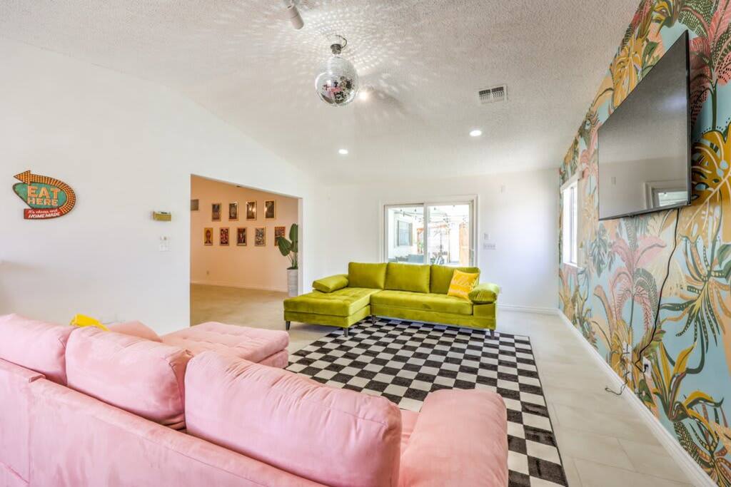 Step into our time machine and journey back to the groovy era of the 70s with our spectacular Las Vegas retreat! Nestled just a 12-minute drive from the strip, our vibrant oasis awaits to immerse you in disco and dazzle. Each of our four cozy bedrooms is uniquely themed to capture the essence of the 70s, while our two stylish bathrooms offer modern comfort. Escape into nostalgia while enjoying all the modern amenities our retro-chic paradise has to offer. Your Las Vegas getaway starts here!