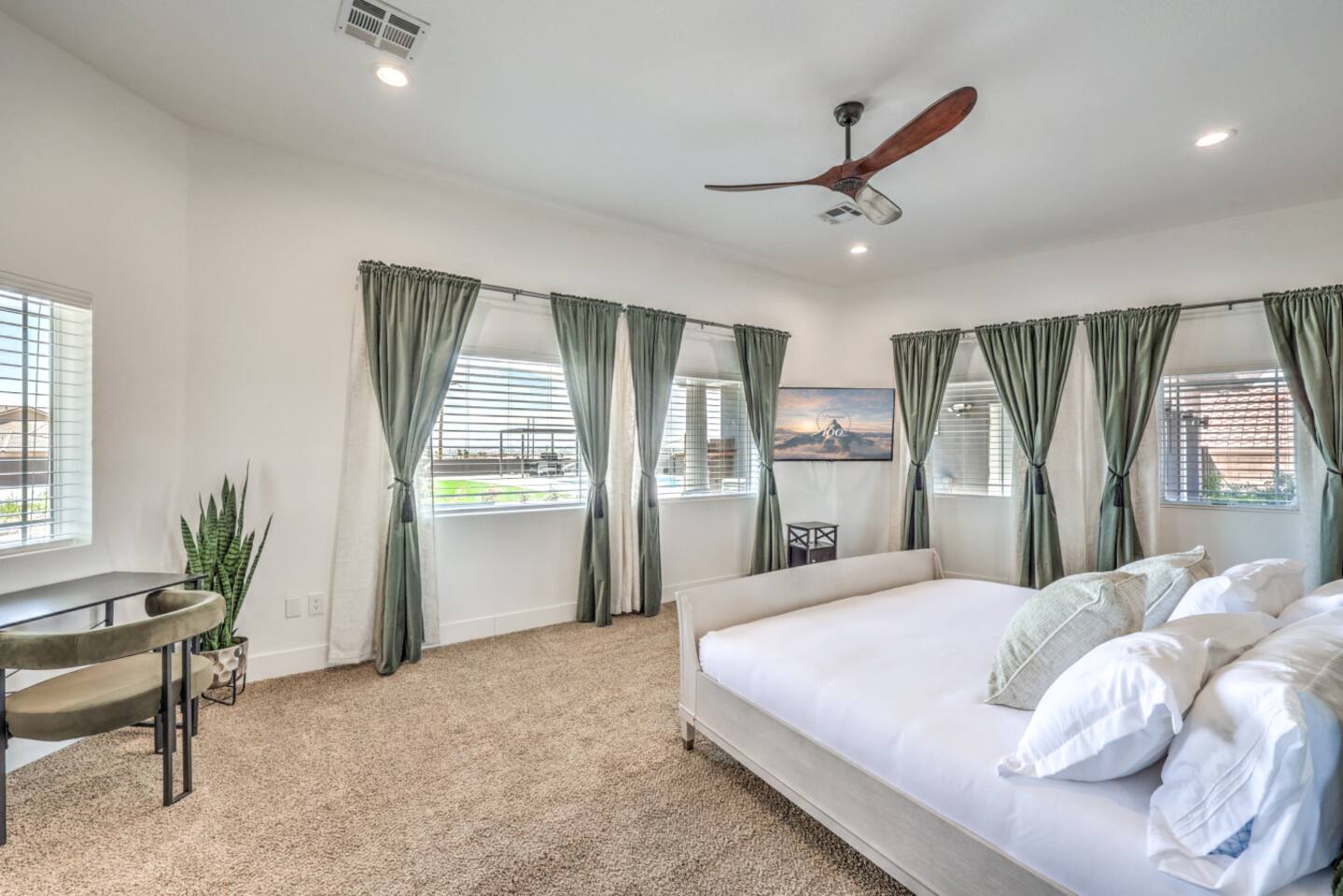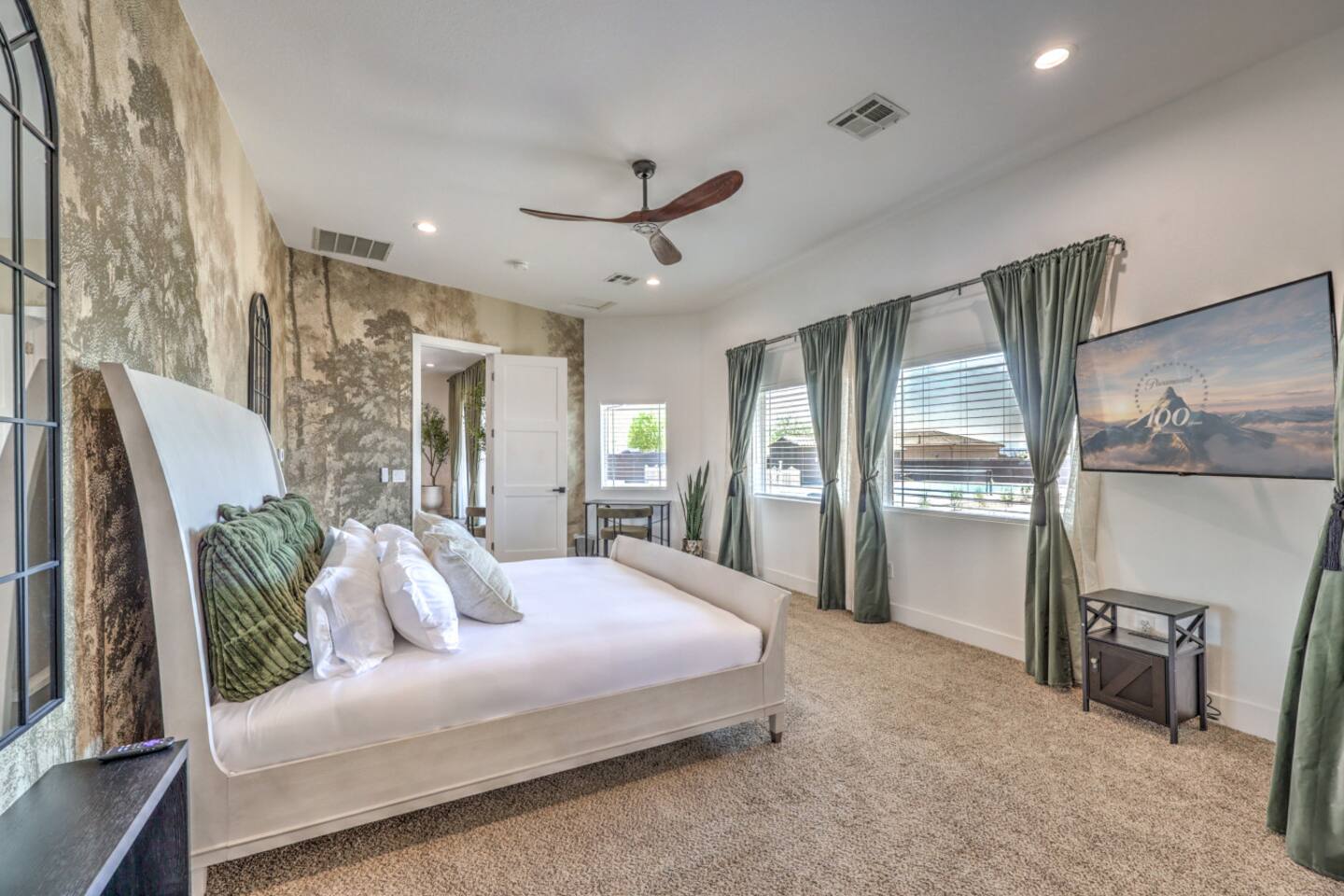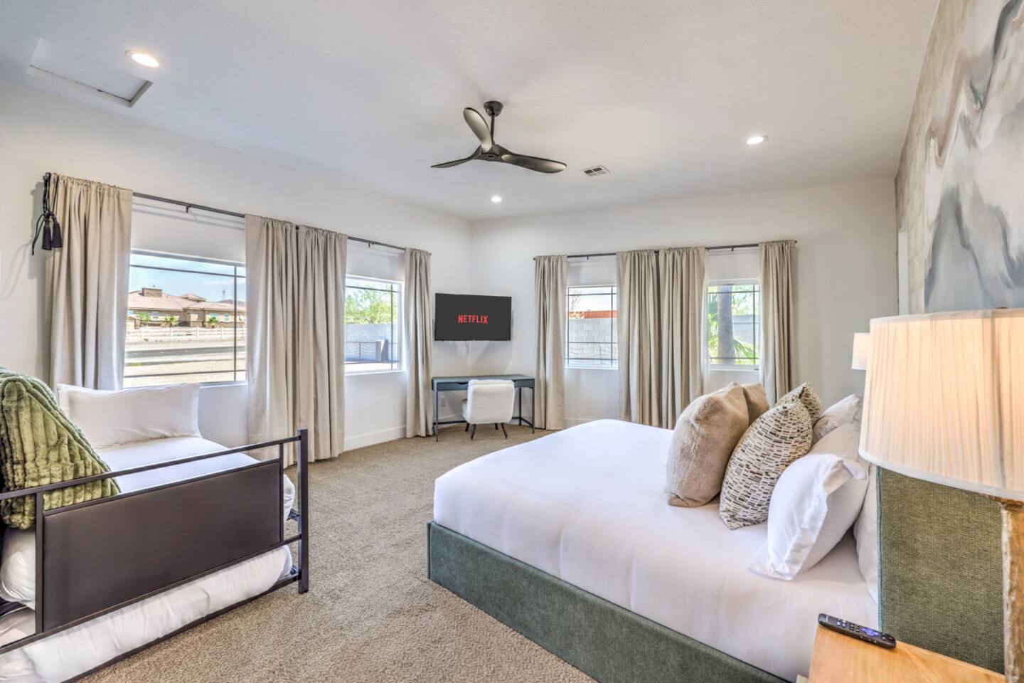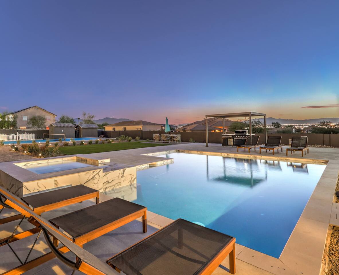 From the moment you step through the door at Henderson Hideaway, the desert sun spills through expansive windows, drawing your eyes to a sweeping panorama of the Las Vegas Strip shimmering in the distance. Morning begins slowly here — coffee in hand, wrapped in a soft throw, you settle into a lounge chair by the pool as the mountains catch the first light. Days are for indulgence. Slip into the heated pool, let the spa jets work away the last of your stress, or stretch out on the sun deck with your favorite playlist. The chef’s kitchen isn’t just for cooking — it’s for gathering. Friends laughing over wine, someone slicing fresh fruit at the oversized island, the scent of dinner drifting outside to the al fresco dining table. As night falls, the city lights flicker to life. You take your spot in the outdoor lounge, glass of champagne in hand, watching the Strip sparkle under the desert sky. The laughter carries well into the night — maybe a dip in the spa before bed, maybe just one more toast to the view. Here, every moment feels effortless, private, and unforgettable. Henderson Hideaway isn’t just a place to stay — it’s where your Vegas story begins, and where you’ll wish it never ends.