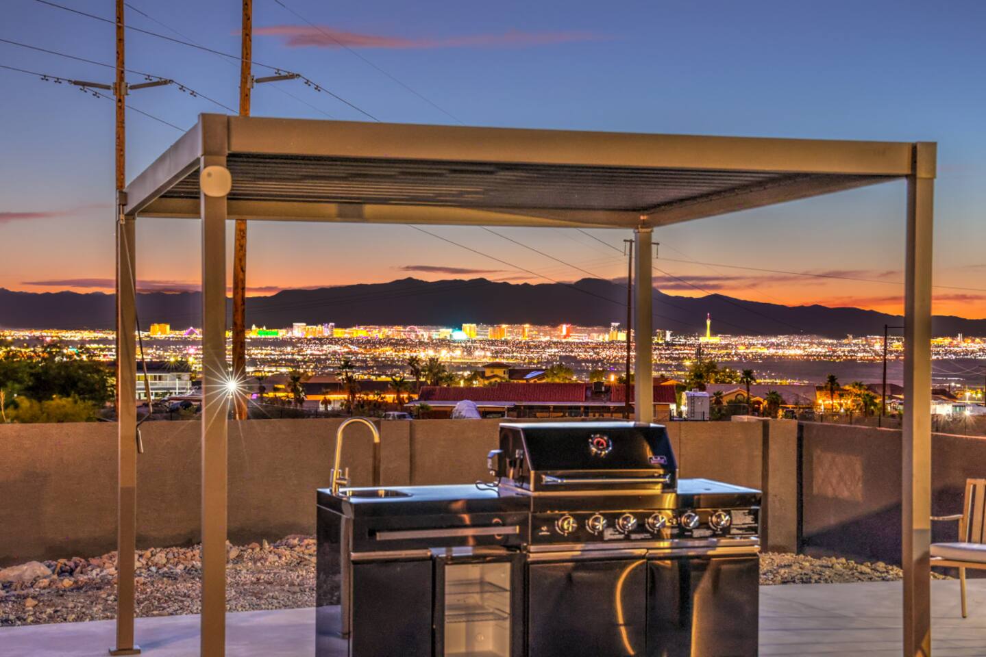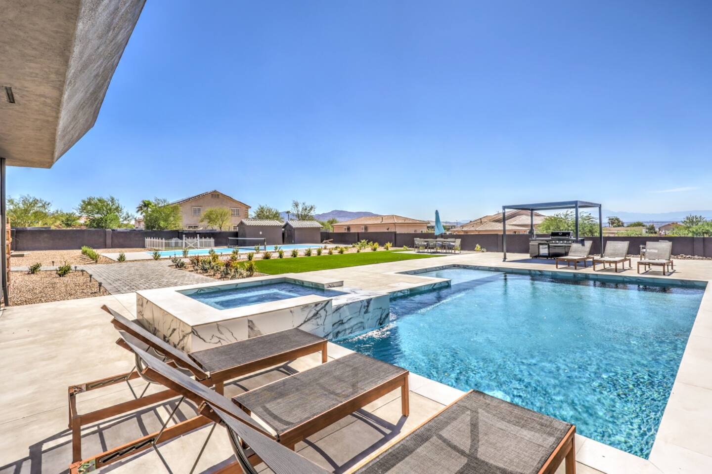 ᨒ CIELO 𖤓 Pool/Spa 𖤓 4,016 sq ft / 373.1 m² of luxury living 𖤓 1 acre / 3,966 m² lot 𖤓 5 bedrooms 𖤓 9 beds 𖤓 4 bathrooms 𖤓 15 Minutes to Lake Las Vegas & Lake Mead 𖤓 30 Minutes to Las Vegas Strip 𖤓 Private pool & hot tub with heating option 𖤓 Panoramic city views 𖤓 Chef’s kitchen w/ premium appliances and two sinks 𖤓 Outdoor lounge & dining spaces 𖤓 EV charger & garage parking 𖤓 Optional pool heating available for $100 per night (minimum $300 per stay)