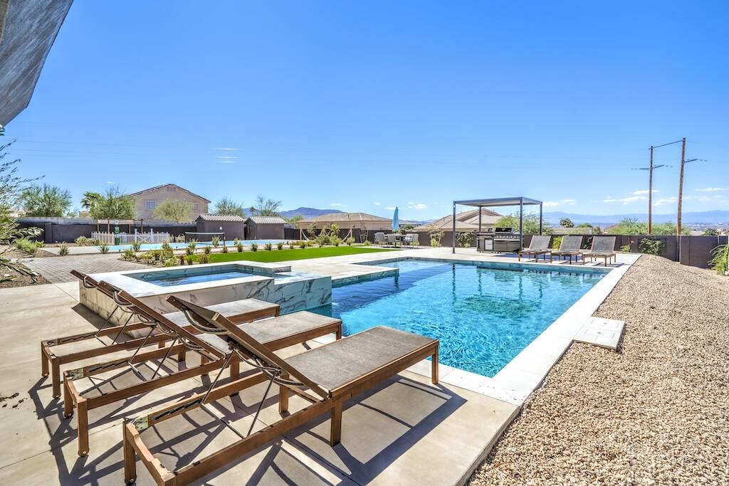From the moment you step through the door at Henderson Hideaway, the desert sun spills through expansive windows, drawing your eyes to a sweeping panorama of the Las Vegas Strip shimmering in the distance. Morning begins slowly here — coffee in hand, wrapped in a soft throw, you settle into a lounge chair by the pool as the mountains catch the first light. Days are for indulgence. Slip into the heated pool, let the spa jets work away the last of your stress, or stretch out on the sun deck with your favorite playlist. The chef’s kitchen isn’t just for cooking — it’s for gathering. Friends laughing over wine, someone slicing fresh fruit at the oversized island, the scent of dinner drifting outside to the al fresco dining table. As night falls, the city lights flicker to life. You take your spot in the outdoor lounge, glass of champagne in hand, watching the Strip sparkle under the desert sky. The laughter carries well into the night — maybe a dip in the spa before bed, maybe just one more toast to the view. Here, every moment feels effortless, private, and unforgettable. Henderson Hideaway isn’t just a place to stay — it’s where your Vegas story begins, and where you’ll wish it never ends.