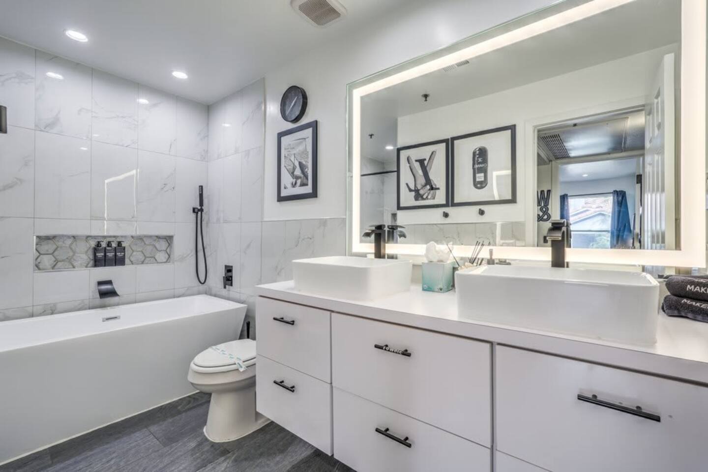 • There is no elevator and unit is on the third story. Family Stays: • Pack’N Play, High Chair can be provided with Advance Notice of your Stay. ($80 one-time fee) * We have security cameras facing the street and in the front door. * We have noise monitoring device in the backyard and in the living room. These devices only records the decibels to monitor noise level during quiet hours but NO audio recording. * Most gas fireplaces are for decorative purposes only. * Most gas fireplaces are for decorative purposes only. * The fridge is not connected to a waterline due to leak risks. If you need an ice tray, we'll have one delivered within 24 hours. *Please throw out your garbage to the two dumpster close by the unit. All of them are on 24/7 and for security purposes. There is no camera in private area or anywhere inside the house. Security cameras solely facing the street (as required by the City) • Guests are required to sign a "Guest Rental Agreement" upon booking.