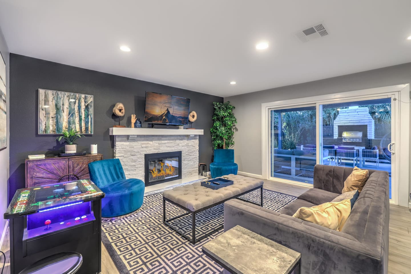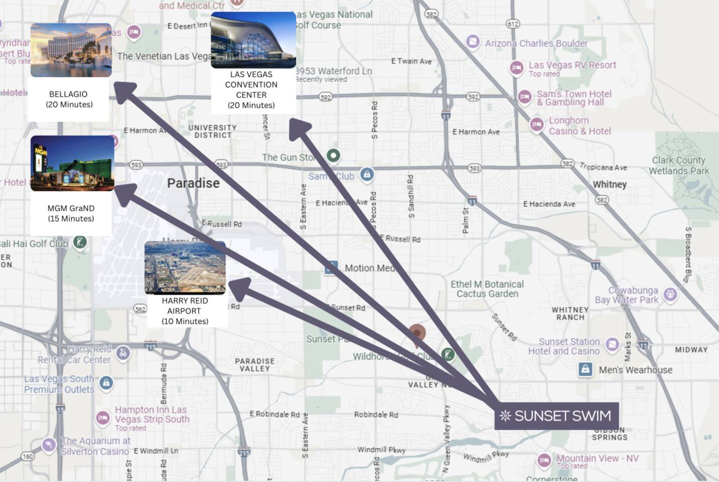 Sunset Swim - Lux Vegas Pool Oasis, Hot Tub, BBQ From the moment you arrive, 𖤓 SUNSET SWIM reveals itself as a private luxury retreat where warm desert light, elegant design, and resort-style amenities come together to create an unforgettable Las Vegas escape. Every room is thoughtfully curated for comfort and style, while the open-concept living spaces flow seamlessly to an outdoor oasis featuring a sparkling pool, wet deck, and spa—perfect for slow mornings, golden-hour lounging, or evenings under the Nevada sky. Designed for families, executives, long-stay guests, and groups seeking elevated relaxation, this villa blends sophistication with effortless livability just minutes from world-class dining, entertainment, and the vibrant energy of the Strip. ☆☆ HIGHLIGHTS ☆☆ Step inside to discover an elegant open floor plan filled with natural light, designer furnishings, and curated details that elevate every stay. The gourmet kitchen is fully equipped with stainless steel appliances, quartz countertops, and everything you need to prepare meals or host with ease. The living areas provide the perfect blend of sophistication and comfort, with plush seating, smart TVs, and high-speed WiFi throughout the home. Outdoors, you’ll find a private backyard oasis designed for both relaxation and entertaining. Lounge by the sparkling pool, gather under the covered patio, or enjoy dinner al fresco with the outdoor dining and BBQ area. ☆☆ SLEEPING ARRANGEMENTS ☆☆ 🛏 Primary Suite: King bed and a trundle bed (with two twins) in primary suite as well as a Smart TV and ensuite bathroom with walk-in "dual shower head" spa shower. A private retreat in the suite features another full sized bed. 🛏 Bedroom 2: Queen bed 🛏 Bedroom 3: Twin Beds 🛏 Bedroom 4: One Queen Bed Each bedroom is thoughtfully styled with upscale linens, elegant finishes, and plenty of storage, creating a private sanctuary for every guest. ☆☆ THINGS TO DO ☆☆ Within 15 minutes, you’ll have access to the best of Henderson and Las Vegas: 🎶 Venues & Events – Allegiant Stadium, T-Mobile Arena, and the Las Vegas Convention Center 🎰 Casinos & Entertainment – The Strip, Green Valley Ranch, M Resort, Sunset Station 🍷 Dining & Shopping – The District at Green Valley Ranch, Town Square, and Galleria Mall 🌿 Recreation – Lake Las Vegas, Cornerstone Park, Clark County Wetlands Park, and championship golf courses nearby ✈️ Harry Reid International Airport – 15 minutes by car 🏥 Nearest Hospital – Henderson Hospital – 10 minutes by car