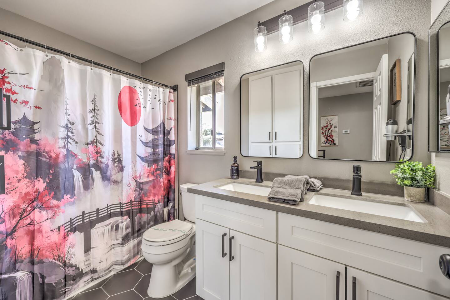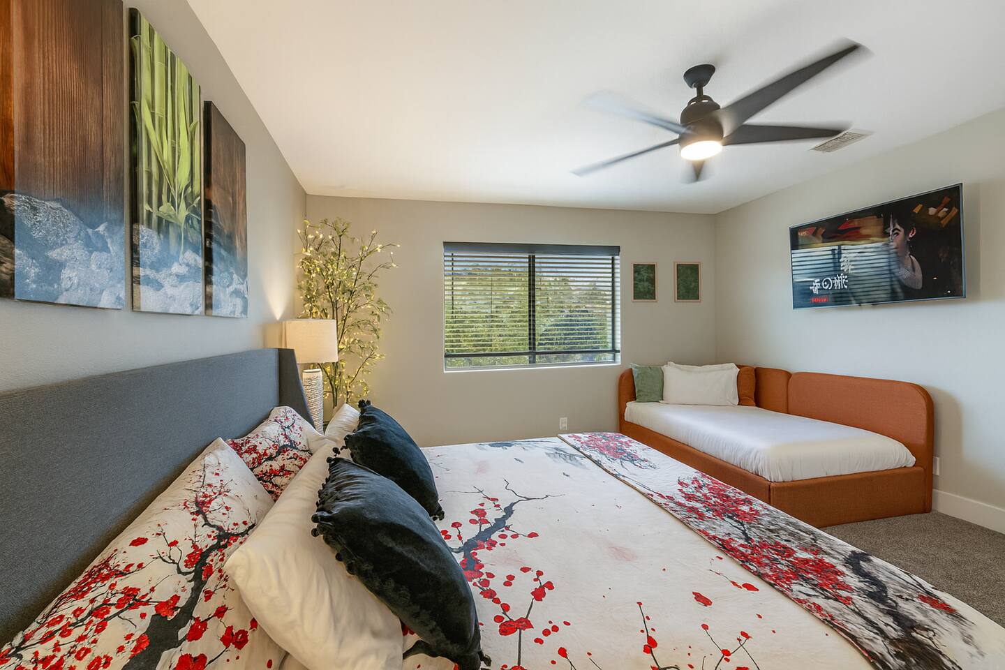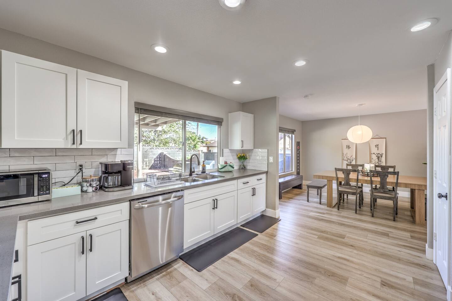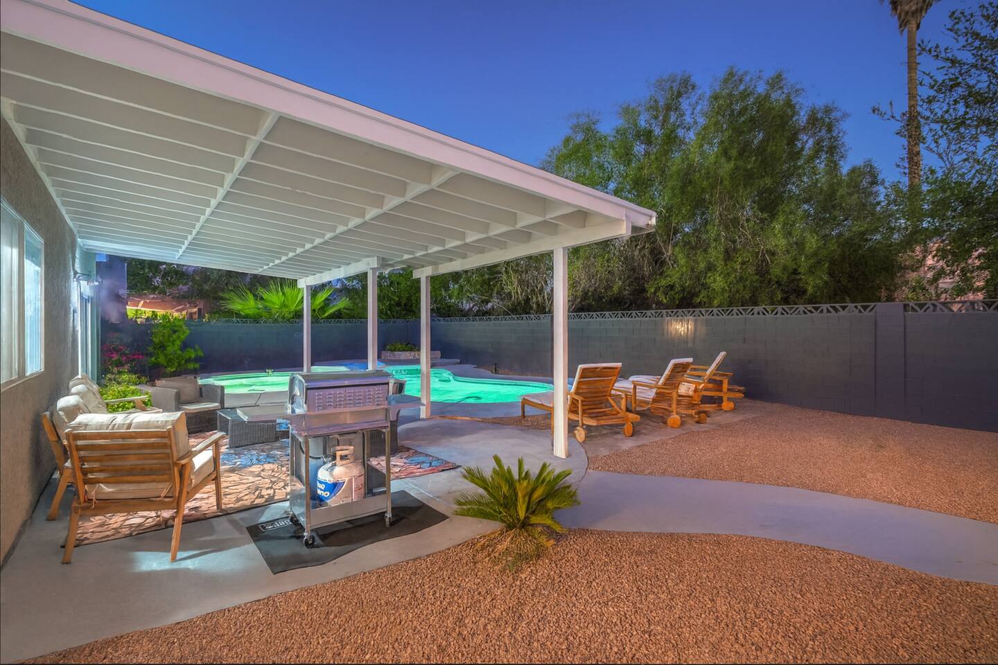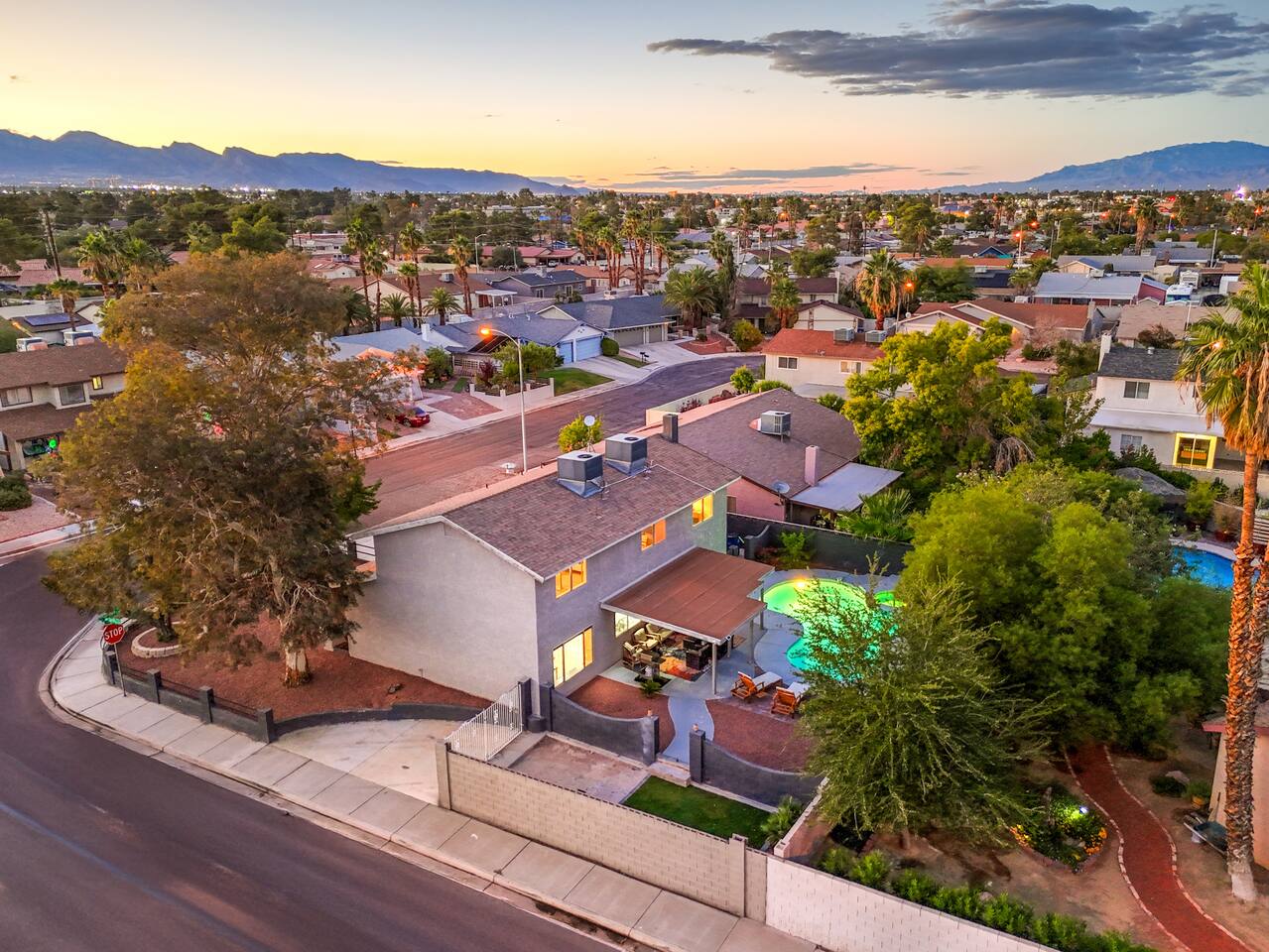 🌸 Tokyo Escape 逃避 Your Modern Las Vegas Retreat Step into Tokyo Escape, a one-of-a-kind Las Vegas sanctuary inspired by the serenity of Japan and the vibrancy of Tokyo nightlife. Designed for families, friends, and groups, this four-bedroom home blends modern luxury with peaceful zen energy — complete with a heated pool & spa, open living spaces, and a dog-friendly outdoor area for your furry companions. ✨ Highlights 2,163 sq ft of thoughtfully designed living space 4 bedrooms | 2.5 bathrooms | 8 beds | Sleeps up to 10 Modern kitchen with stainless steel appliances Japanese tea room for meditation, relaxation, or a casual billiards match — complete with Smart TV Family room with large sectional and 75" Smart TV for movie nights Private heated pool & spa with lounge chairs + covered patio (Ask about pool heating or jacuzzi options) Fenced dog run and relief area – pet-friendly with approval In-home washer & dryer for extended stays Free parking + RV space Minutes from The Strip & Las Vegas Chinatown (150+ restaurants!) 🛏 Themed Rooms & Sleeping Arrangements: 1) The Shrine (Primary Suite): King bed + twin daybed, Smart TV, ensuite bath with double vanity & soaking tub — a true zen garden retreat. Kimonos provided for complimentary use. 2) Bedroom 2 – Shinjuku Suite: Queen bed with moody neon lighting for a sleek, Tokyo-style escape. 3) Bedroom 3 – Samurai Room: Twin-over-full bunk + kids’ play corner inspired by traditional Japan. 4) Bedroom 4 – Anime Room: Twin bed + twin trundle (2 beds) — playful and colorful with anime art. Fresh towels, toiletries & half bath on main floor provided. 🍹 Explore & Experience Just minutes away, explore the best of Las Vegas culture, cuisine, and entertainment: 🎰 Casinos & Shows: The STRAT, Wynn, Resorts World, Caesars, Bellagio & more 🌸 Food & Nightlife: Lotus of Siam, Tacos El Gordo, The Golden Tiki, Barry’s Downtown Prime 🏮 Las Vegas Chinatown: 150+ restaurants, markets & nightlife — only 5 minutes away 🎡 Family Fun: AREA15, Adventuredome, The Venetian gondolas 🌿 Your Escape Awaits Unwind in the heated spa, sip tea in the Tatami room, or enjoy a serene night under the stars. Tokyo Escape is where the tranquility of Japan meets the excitement of Las Vegas — the perfect balance of calm and connection.