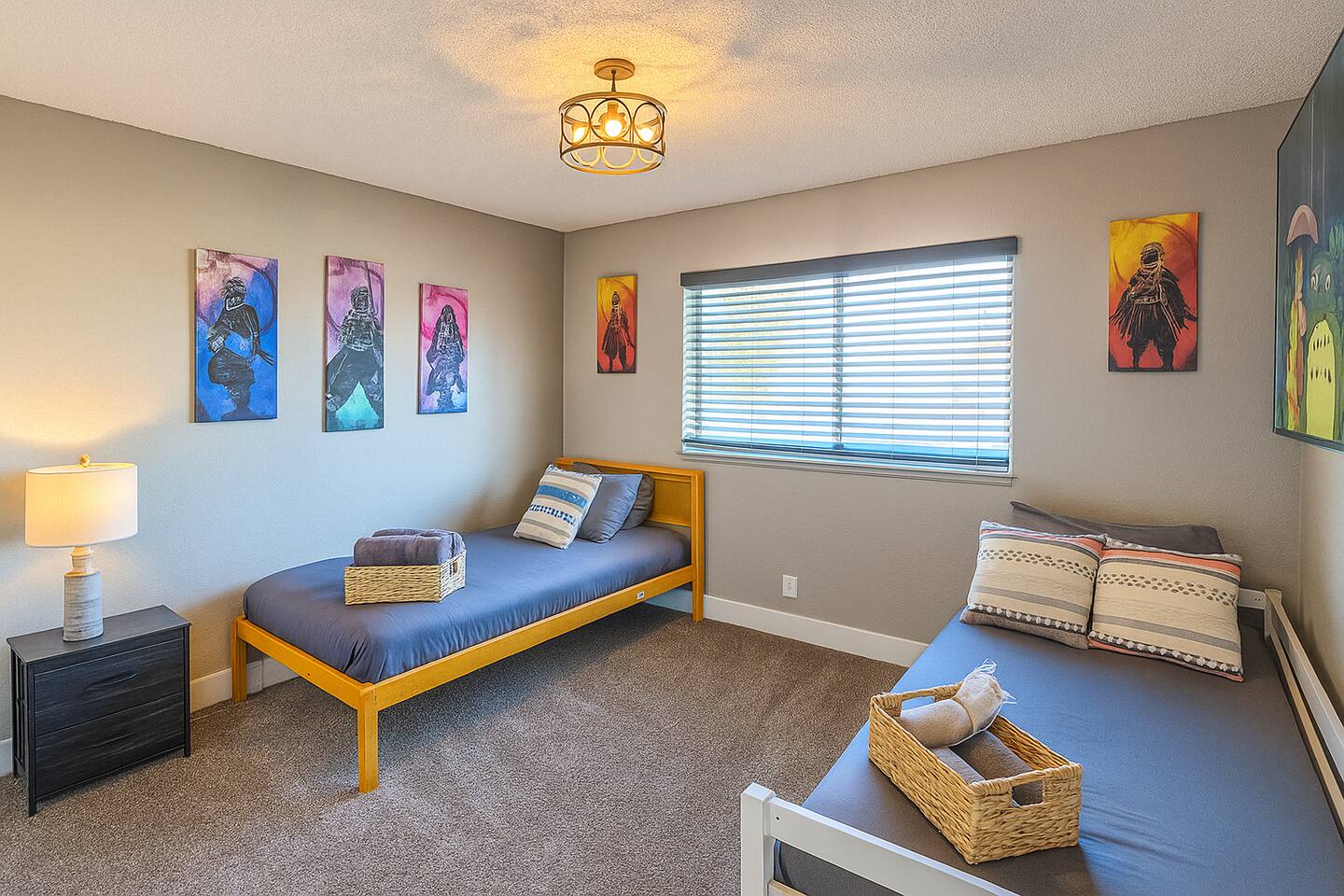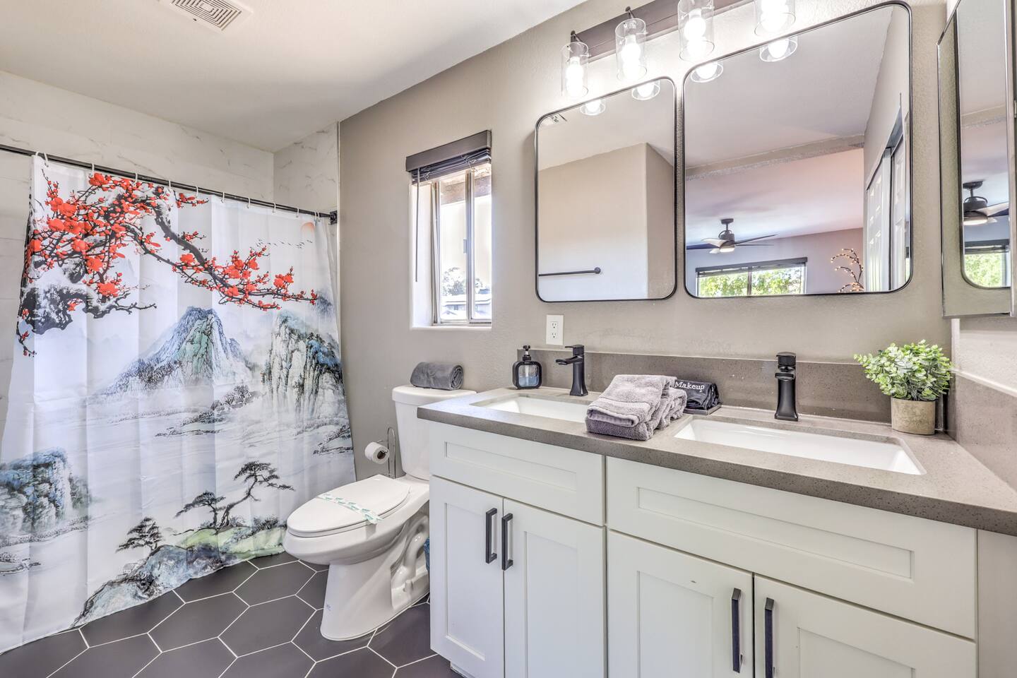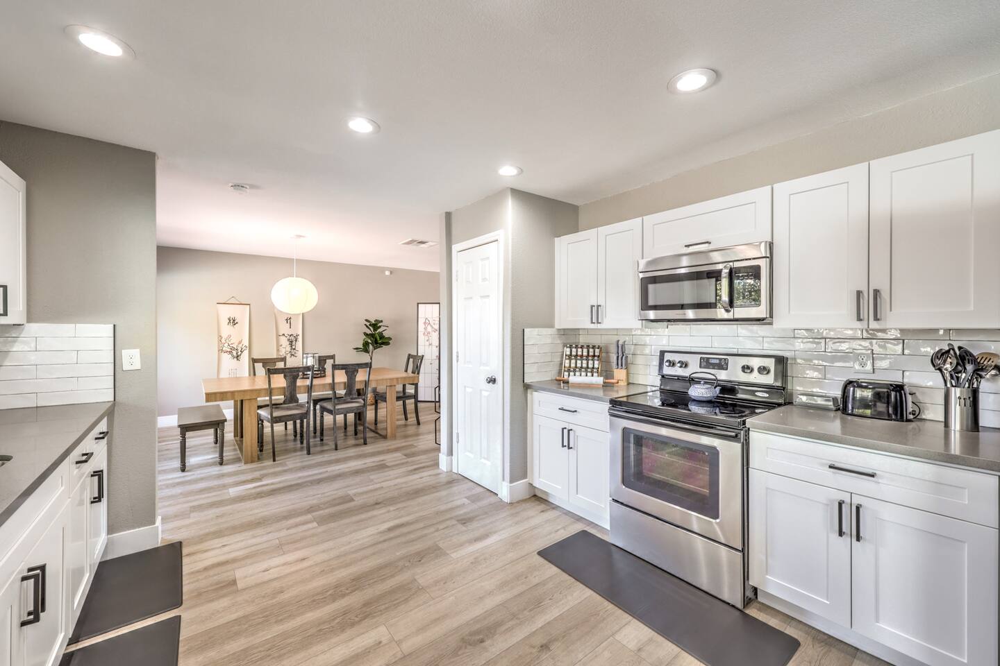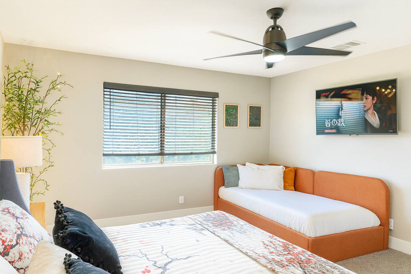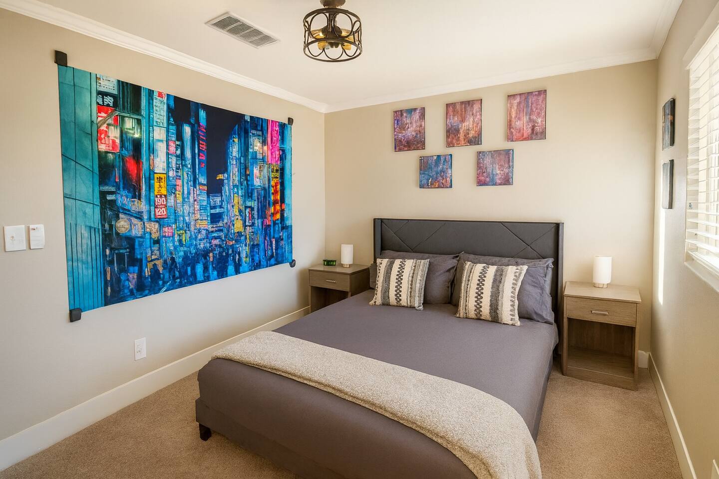 🌸 Tokyo Escape 逃避 Your Modern Las Vegas Retreat Step into Tokyo Escape, a one-of-a-kind Las Vegas sanctuary inspired by the serenity of Japan and the vibrancy of Tokyo nightlife. Designed for families, friends, and groups, this four-bedroom home blends modern luxury with peaceful zen energy — complete with a heated pool & spa, open living spaces, and a dog-friendly outdoor area for your furry companions. ✨ Highlights 2,163 sq ft of thoughtfully designed living space 4 bedrooms | 2.5 bathrooms | 8 beds | Sleeps up to 10 Modern kitchen with stainless steel appliances Japanese tea room for meditation, relaxation, or a casual billiards match — complete with Smart TV Family room with large sectional and 75" Smart TV for movie nights Private heated pool & spa with lounge chairs + covered patio (Ask about pool heating or jacuzzi options) Fenced dog run and relief area – pet-friendly with approval In-home washer & dryer for extended stays Free parking + RV space Minutes from The Strip & Las Vegas Chinatown (150+ restaurants!) 🛏 Themed Rooms & Sleeping Arrangements: 1) The Shrine (Primary Suite): King bed + twin daybed, Smart TV, ensuite bath with double vanity & soaking tub — a true zen garden retreat. Kimonos provided for complimentary use. 2) Bedroom 2 – Shinjuku Suite: Queen bed with moody neon lighting for a sleek, Tokyo-style escape. 3) Bedroom 3 – Samurai Room: Twin-over-full bunk + kids’ play corner inspired by traditional Japan. 4) Bedroom 4 – Anime Room: Twin bed + twin trundle (2 beds) — playful and colorful with anime art. Fresh towels, toiletries & half bath on main floor provided. 🍹 Explore & Experience Just minutes away, explore the best of Las Vegas culture, cuisine, and entertainment: 🎰 Casinos & Shows: The STRAT, Wynn, Resorts World, Caesars, Bellagio & more 🌸 Food & Nightlife: Lotus of Siam, Tacos El Gordo, The Golden Tiki, Barry’s Downtown Prime 🏮 Las Vegas Chinatown: 150+ restaurants, markets & nightlife — only 5 minutes away 🎡 Family Fun: AREA15, Adventuredome, The Venetian gondolas 🌿 Your Escape Awaits Unwind in the heated spa, sip tea in the Tatami room, or enjoy a serene night under the stars. Tokyo Escape is where the tranquility of Japan meets the excitement of Las Vegas — the perfect balance of calm and connection.