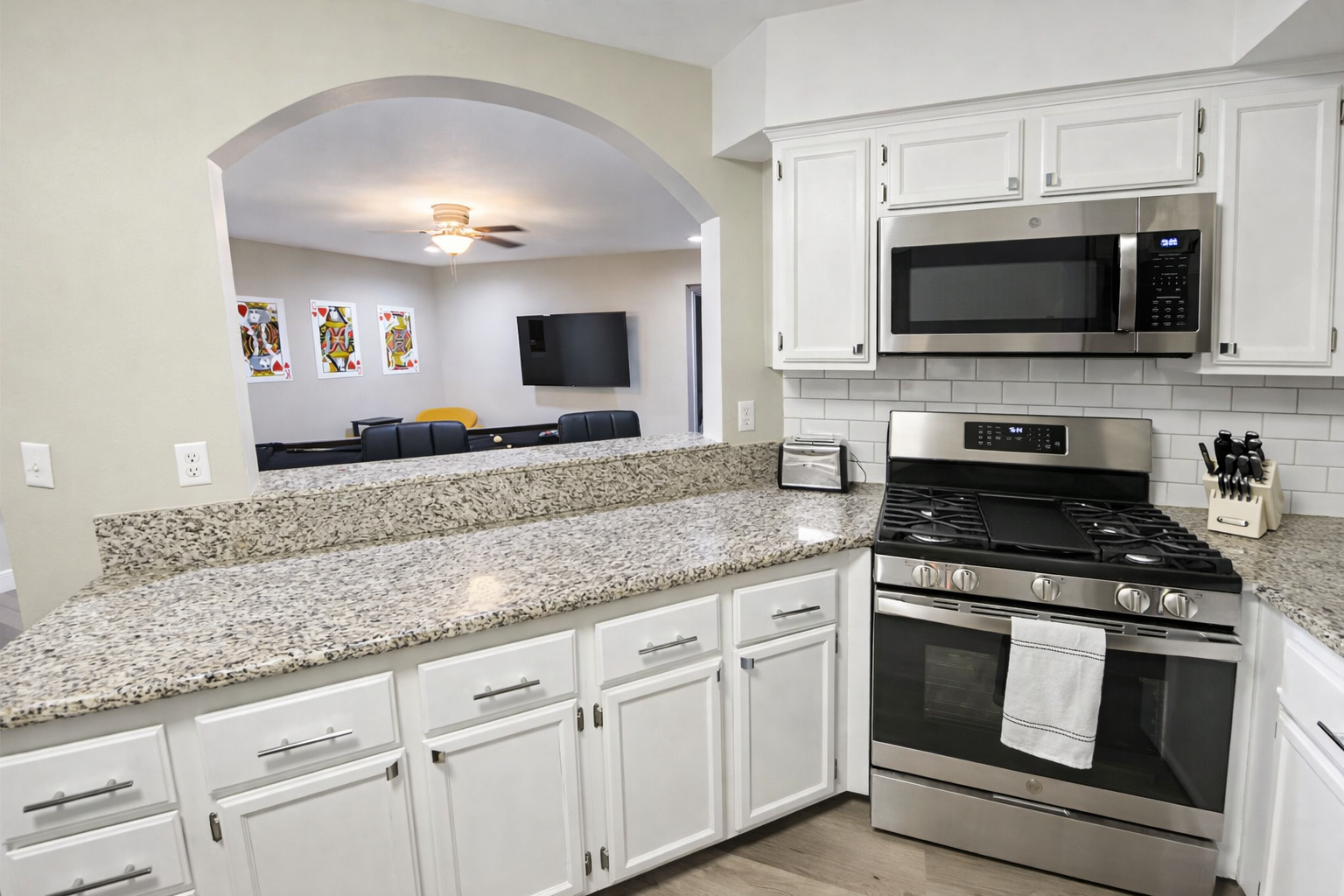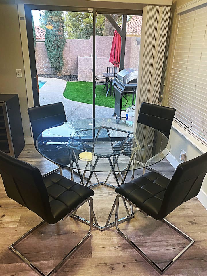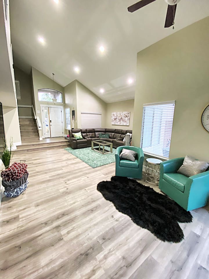 Located in the heart of popular Green Valley, this beautiful 4 bedroom pool retreat is perfectly designed for groups, families, and friends looking to relax, entertain, and enjoy everything Vegas has to offer. BACKYARD OASIS: Step into your private resort-style backyard featuring: - Sparkling private pool (optional heating upgrade available) - Relaxing spa - Fire pit lounge area - Outdoor dining area - Corn hole After a day exploring the Strip, hiking Red Rock or the Grand Canyon, or enjoying nearby dining and casinos, unwind under the stars in your own private retreat. GAME ROOM & INDOOR COMFORT Entertainment continues indoors with: - Custom pool table room with smart TV - Fun arcade game - PAC-MAN and 11 arcade games - Indoor fireplace - 70” HDTV with Hulu, Netflix, and Amazon - High-speed WiFi - Fully Equipped Kitchen - Cook with ease in the updated kitchen featuring: - New top-of-the-line appliances - Fully stocked cookware and essentials - Washer and dryer on-site - Fresh linens and towels provided The open layout makes it easy to cook, dine, and socialize while enjoying seamless indoor/outdoor living. WHERE YOU'LL SLEEP: All 4 bedrooms feature: - Premium mattresses and quality bedding - TVs in every room - Ceiling fans - Extra pillows and blankets for added comfort - Designed to ensure a restful night’s sleep after a full day of Vegas activities. - Primary Suite: King Bedroom with en suite bathroom #1 - Bedroom 2: Queen - Bedroom 3: Queen - Bedroom 4: Queen - Full Bathroom #2 upstairs - Bathroom #3 (half-bath) downstairs LOCATION - 10 minutes to Harry Reid International Airport - 10–15 minutes to the Las Vegas Strip - Under 5 minutes to restaurants, shopping, Costco, and casinos - You’re close to everything — yet far enough away to truly relax. - All surfaces are professionally cleaned and sanitized between every stay for your comfort and peace of mind.