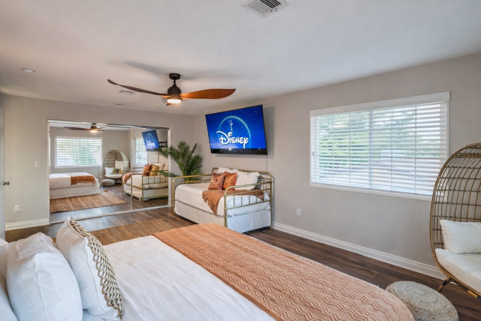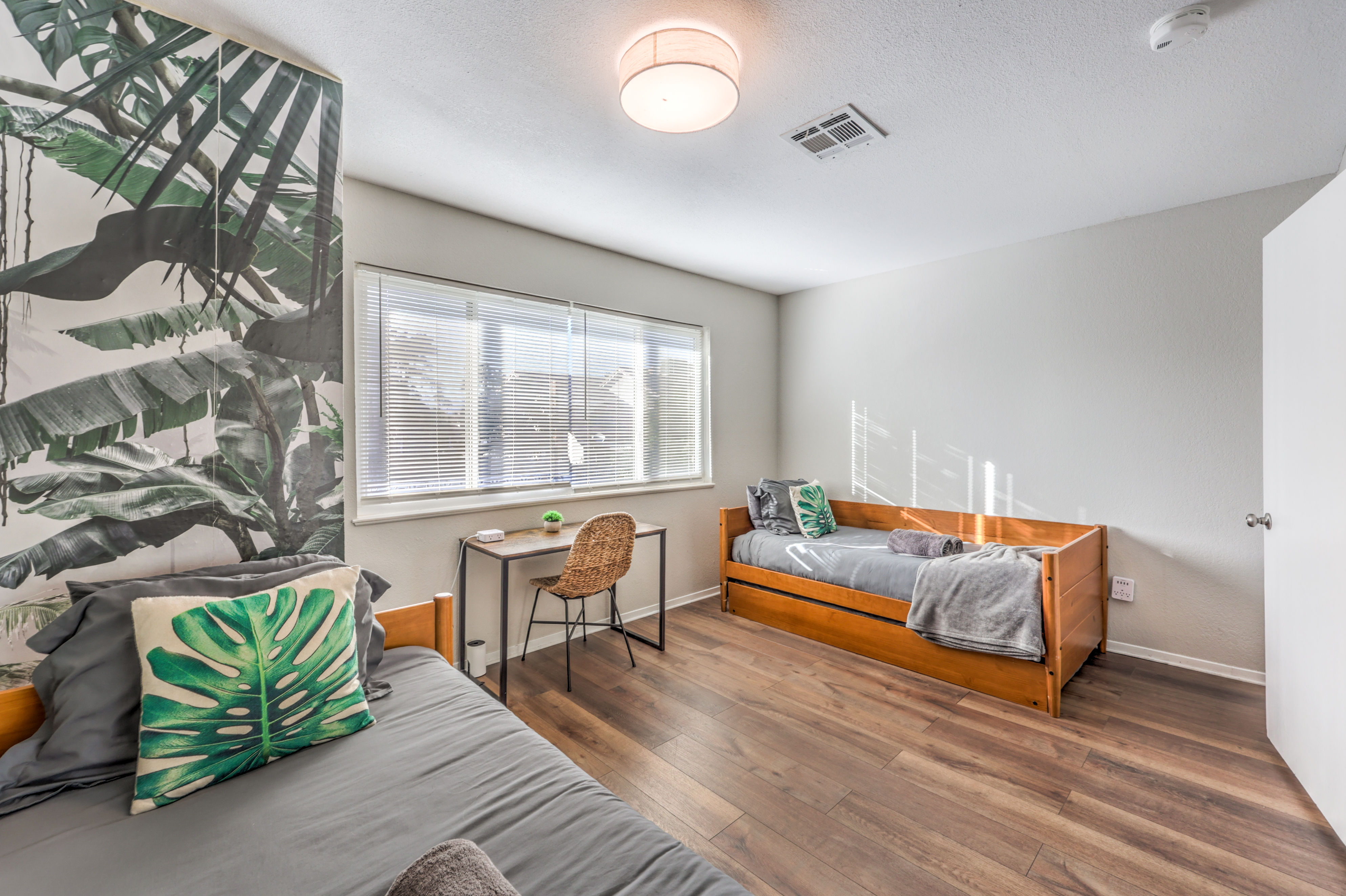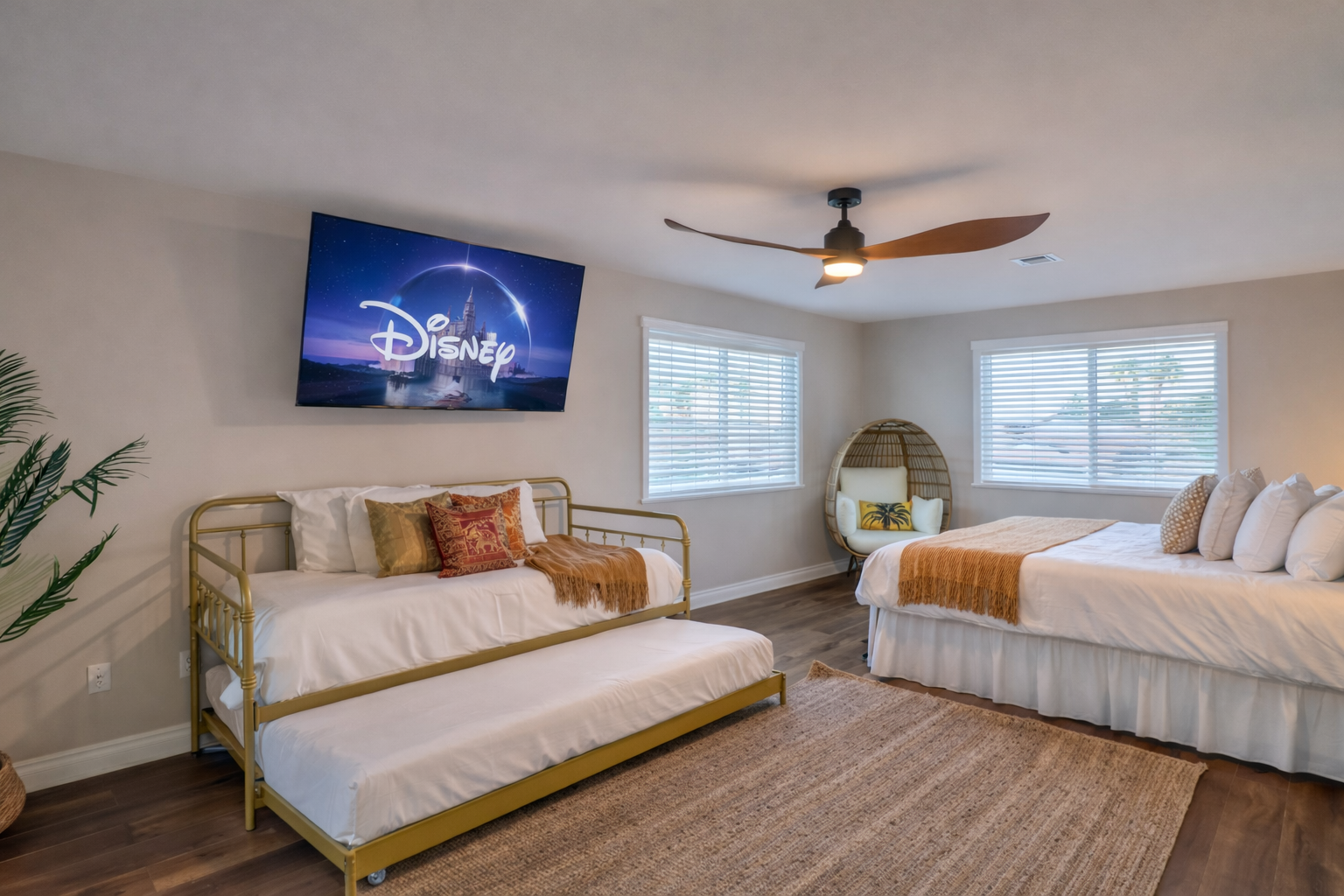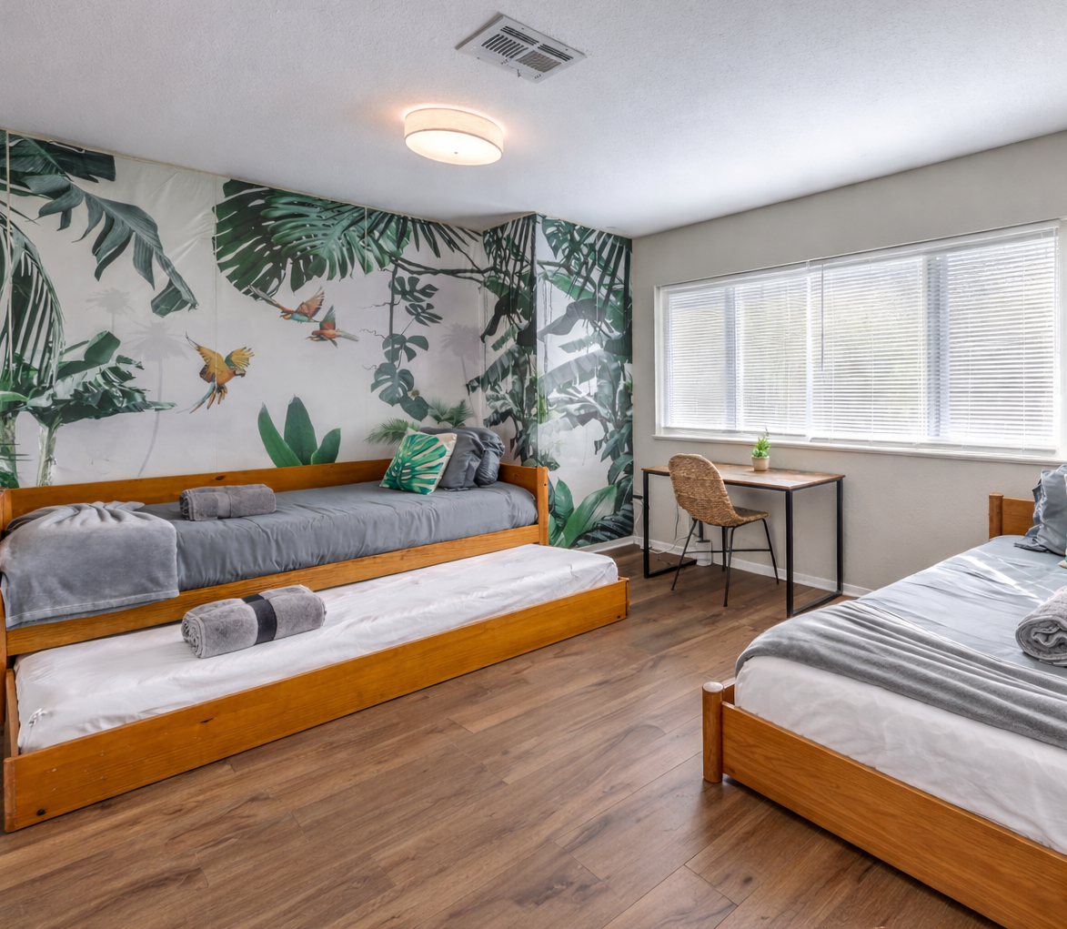 Escape to your private Las Vegas villa, just 9 mins from the world famous Las Vegas Strip! With a generous 2,707 sq. ft. - your villa comfortably fits large groups. Enjoy a private heated pool, an indoor jacuzzi, and a game room with a billiards table. Perfect for families and groups seeking a luxurious and entertaining Vegas getaway with the comforts of a quiet, residential neighborhood. SPACE TO RELAX & GATHER This beautifully updated villa features multiple living areas with comfortable seating and a smart TV, creating an inviting space for movie nights or downtime between outings. A dedicated game area with a billiards table adds an extra layer of entertainment for evenings in. The fully equipped kitchen includes modern appliances, a full refrigerator, and ample counter space — ideal for preparing meals for your group. Enjoy meals together in the formal dining area or take things outside for open-air dining. PRIVATE POOL & INDOOR JACUZZI Unwind your way with resort-style amenities right at home: ☆ Private heated swimming pool ☆ Indoor jacuzzi for year-round relaxation ☆ Outdoor dining area with BBQ ☆ Covered pergola with seating Whether you’re soaking in the spa, cooling off in the pool, or enjoying dinner outdoors, the home is designed for easy, enjoyable vacation living. COMFORTABLE SLEEPING ARRANGEMENTS The villa comfortably accommodates groups with flexible sleeping options across four bedrooms: WHERE YOU’LL SLEEP ☆ Bedroom 1: King bed + 2 single beds ☆ Bedroom 2: Double bed + 1 single bed (Twin over Full bunk) ☆ Bedroom 3: 4 single beds (Two twin trundle sets) + dedicated workspace ☆ Bedroom 4: 2 single beds Each bedroom includes comfortable bedding, air conditioning, and thoughtful storage to ensure a restful stay. DESIGNED FOR CONVENIENCE & PEACE OF MIND Guests enjoy: ☆ High-speed Wi-Fi throughout the home ☆ Smart TVs with streaming access ☆ Complimentary toiletries and coffee ☆ Smart-lock self check-in ☆ Exterior security cameras and noise-monitoring devices to ensure quiet hours ☆ Free parking and private entry PRIME LOCATION Just minutes from major attractions such as New York-New York Hotel & Casino, the High Roller, dining, shopping, and nightlife, the villa makes exploring Las Vegas effortless. After a full day out, return to your private retreat to relax and recharge. PERFECT FOR GROUP GETAWAYS Ideal for families, large groups, reunions, or extended vacations, this villa combines space, comfort, and location into one seamless experience. Whether you’re lounging poolside, hosting a group dinner, or heading out for a night on the Strip, this home delivers an unforgettable stay. Book today and enjoy a Las Vegas getaway that blends relaxation, comfort, and adventure. Clark County STVR License #: 2006840